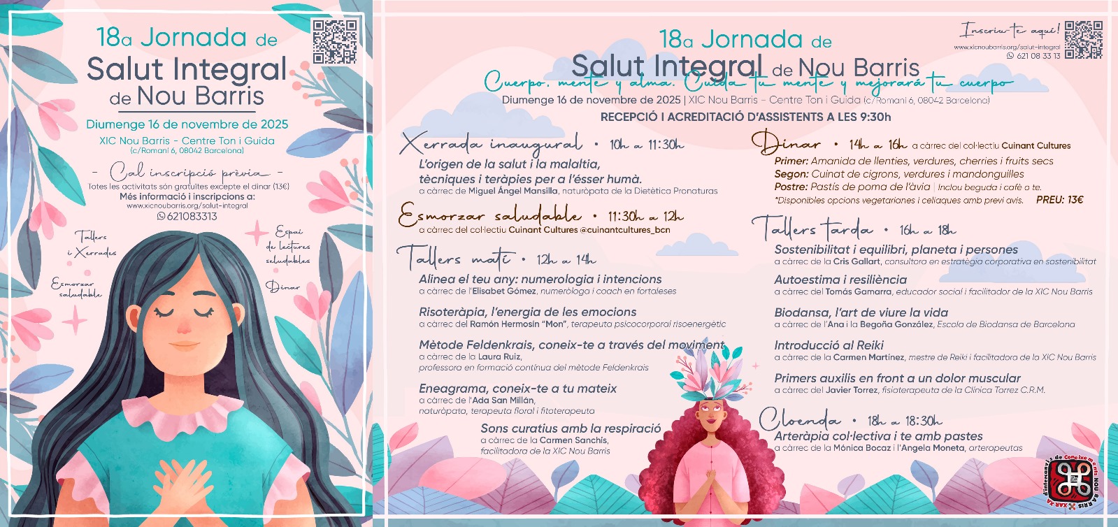 Podéis inscribiros en este enlace hasta el 13 de noviembre: https://www.xicnoubarris.org/salut-integral/