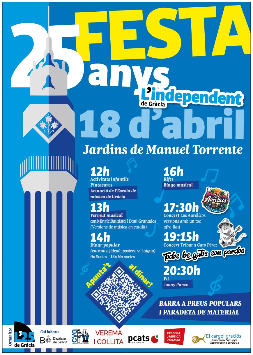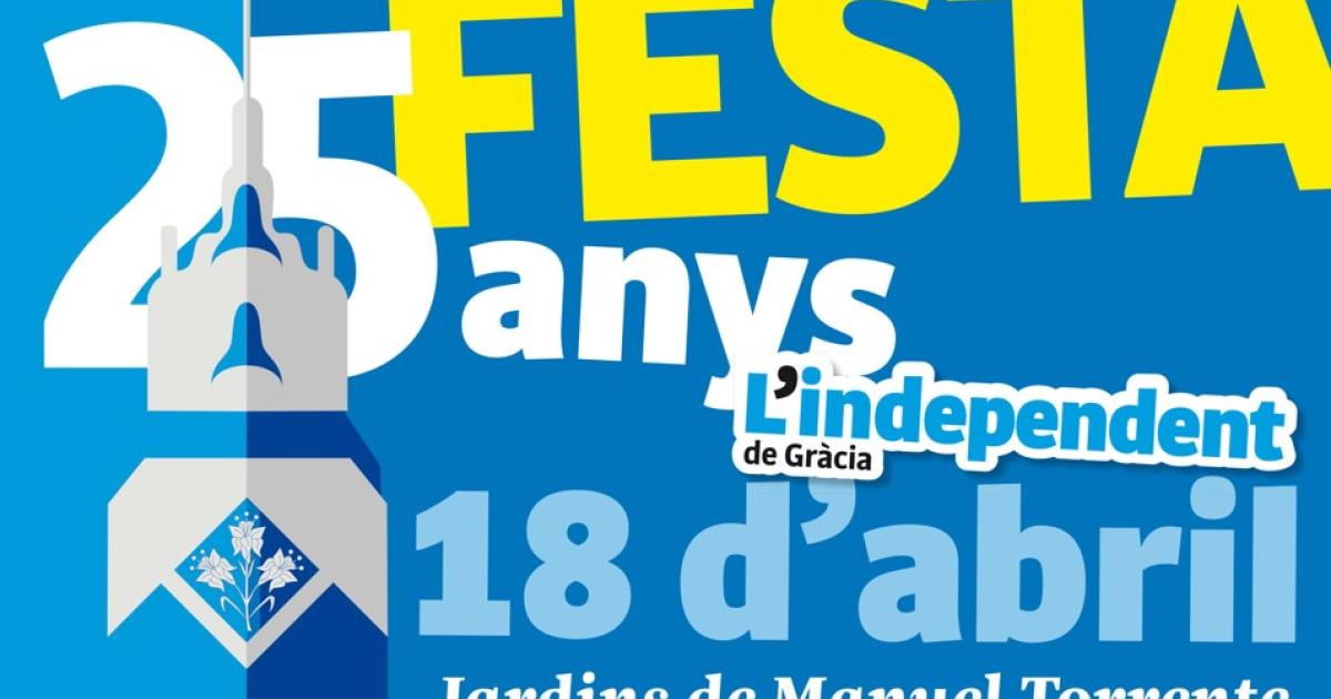 Aquest dissabte 18 vine als Jardins de Manuel Torrente a celebrar els 25 anys de la publicació setmanal L'independent de Gràcia en una festa amb molta música!