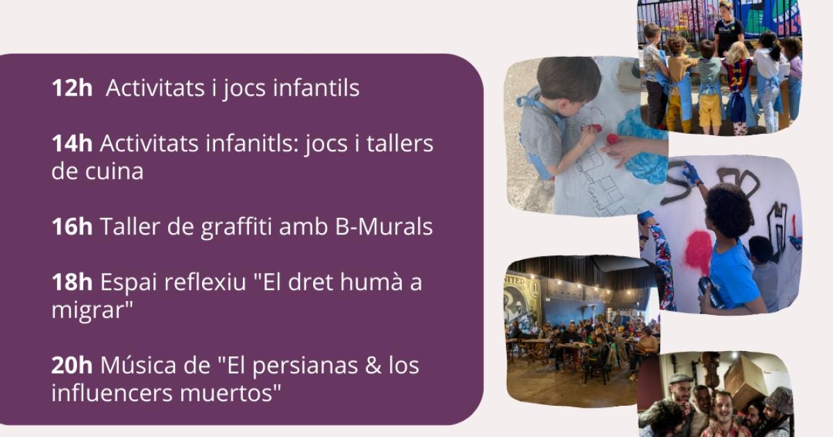 Activitats i jocs infantils, tallers de graffiti i de cuina, espai reflexiu sobre el dret a la migració i música en directe