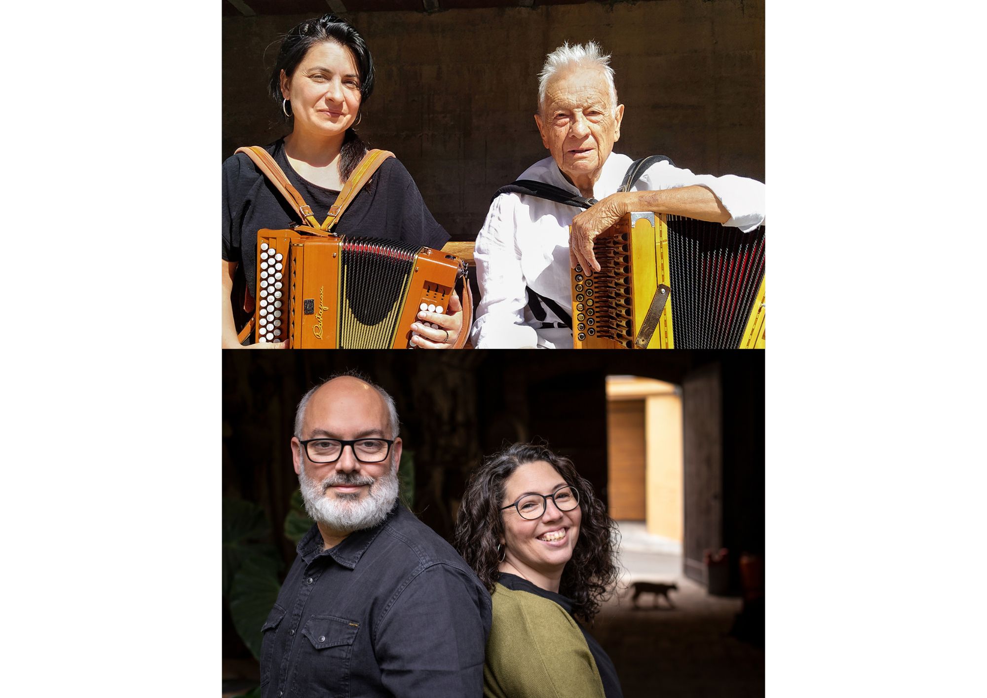 Artur Blasco i Cati Plana són dos dels acordionistes referents del país. Al Tradicionàrius ens presenten 2 Històries, un projecte basat exclusivament en els treballs de recerca, en l’àmbit del Pirineu, que Artur Blasco va recollir en l’obra “A peu pels camins del cançoner” (12 volums, 1700 cançons) i en els seus treballs de recuperació de l’acordió diatònic en la dècada dels anys 60. Un repertori acompanyat des de la veu com a instrument principal, i acompanyat de l’acordió diatònic que s’adapta cercant una sonoritat senzilla i clara.