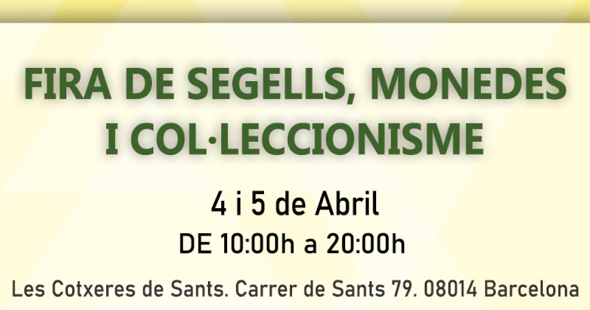 BARNAFIL, la fira de col·leccionisme, compra i venda de segells i monedes a Les Cotxeres de Sants 4 i 5 d'abril de 10 a 20 hores. Entrada Gratuïta