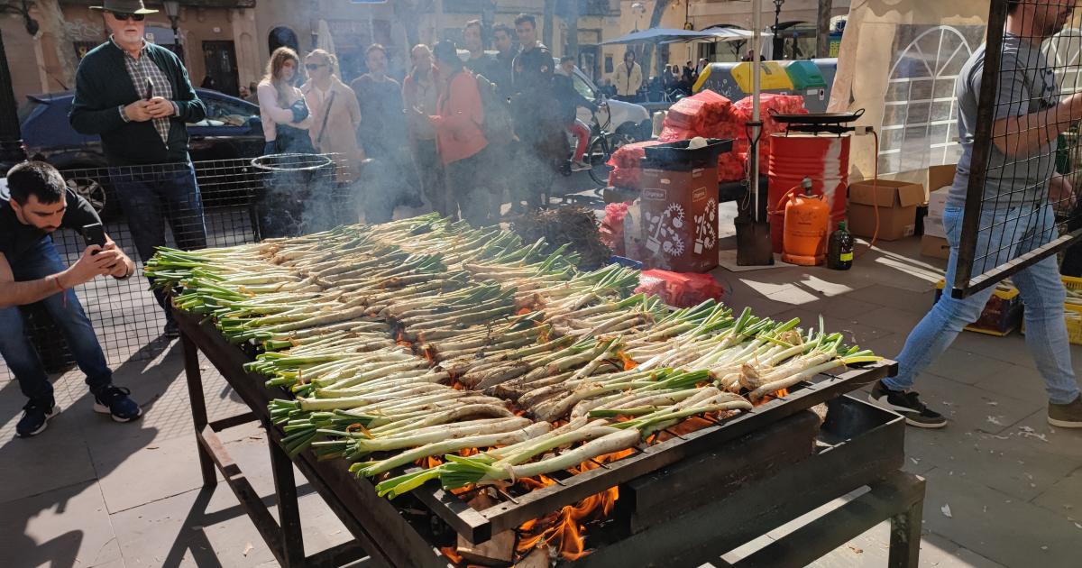Calçotada popular. Al aire lliure a la Plaça Rovira i Trias, Barcelona