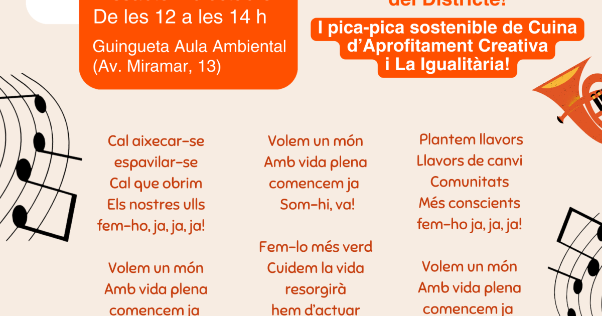 Des de l'Aula Ambiental volem donar visibilitat a aquesta iniciativa i és per això que dissabte 4 d'octubre a les 12 h, dins el marc de #viumontjuïc, us convidem a gaudir d'aquesta cantada comunitària a la guingueta!
