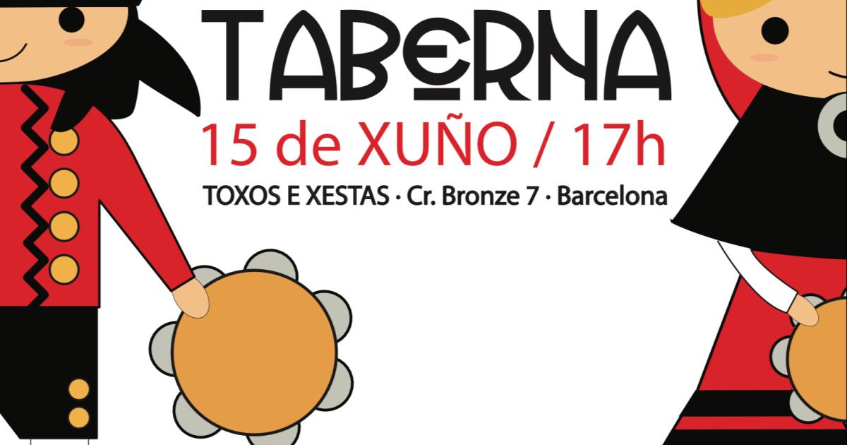 Data inici * ds., 15/06/2024 - 17:00 Districte i barri * Sants-Montjuïc Cantos de Taberna Organitza A.C. Amigos da gaita Toxos e Xestas Trobada de cançons populars gallegues Trobada de grups, seguint les bases , que cantaran i tocaran cançons populars gallegues dins d'un entorn informal i obert a tothom. Entrada gratuïta.