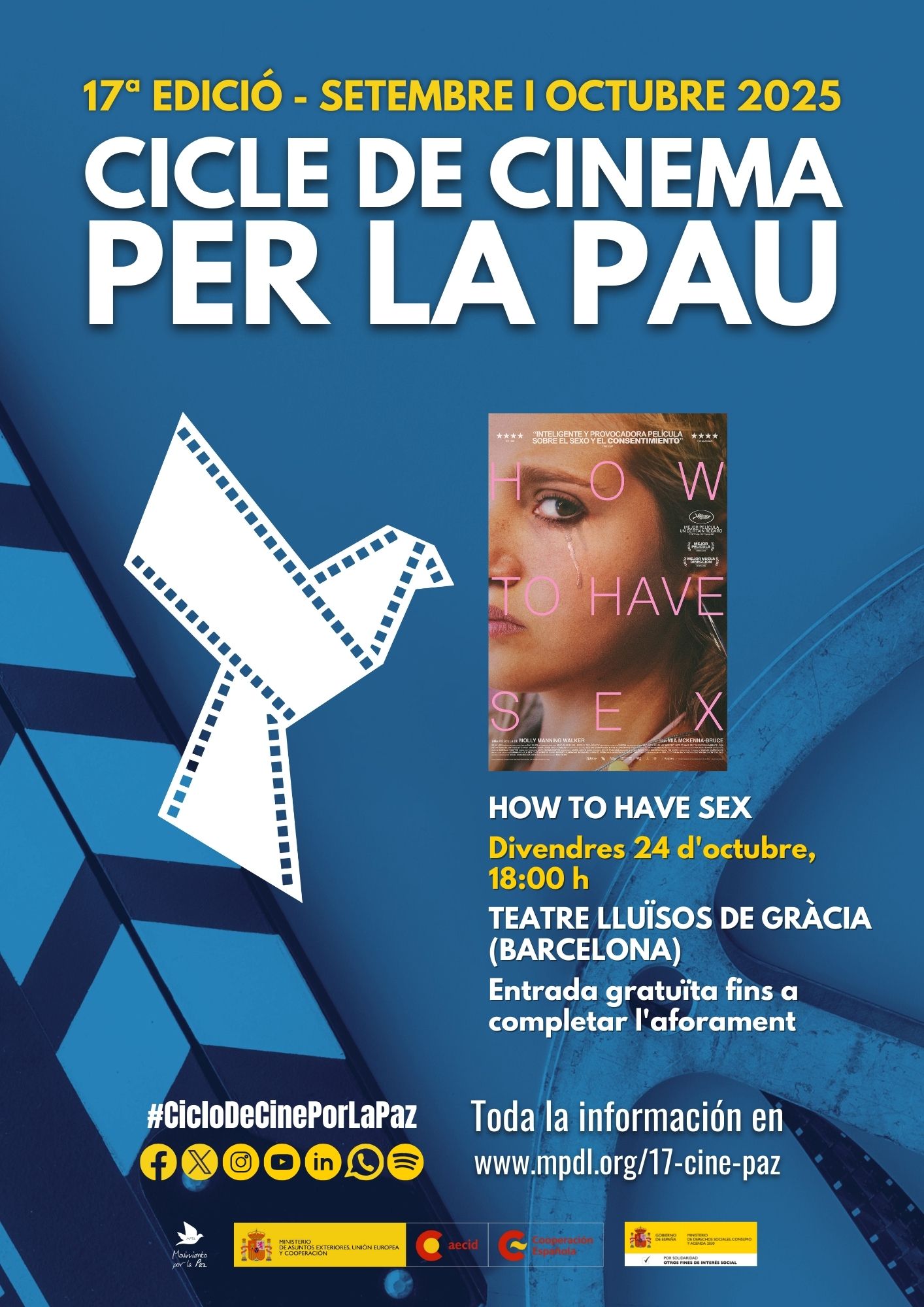 El Cicle de Cinema per la Pau del MPDL torna a Barcelona amb la projecció de How to have sex, de Molly Manning Walker. Una pel·lícula que obre el debat sobre el consentiment, la pressió social i les relacions afectivo-sexuals en la joventut.