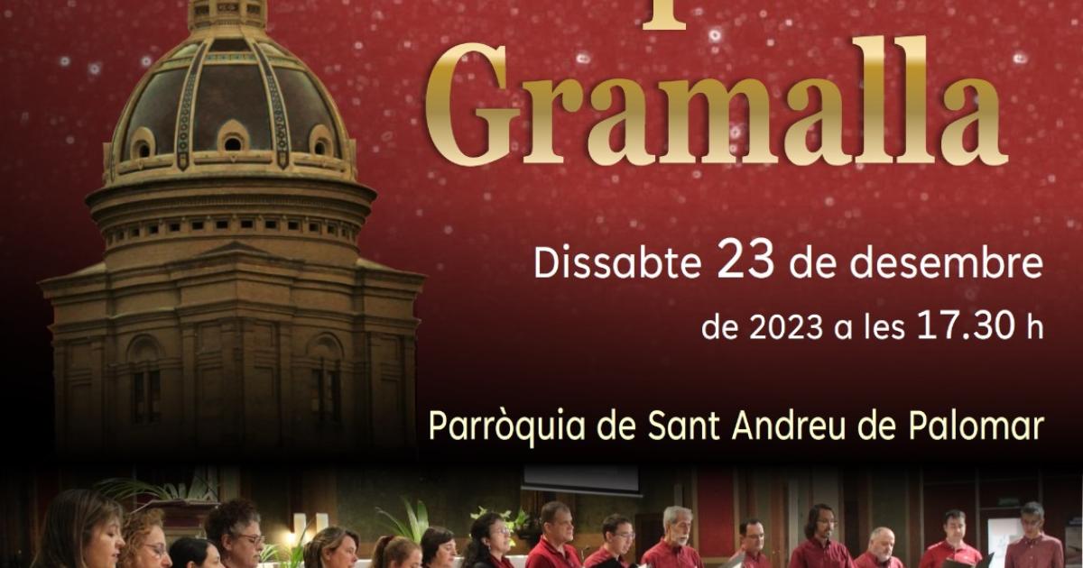 Data inici * ds., 23/12/2023 - 17:30 Districte i barri * Sant Andreu Concert de Nadal Organitza Capella Gramalla La coral Capella Gramalla ofereix el seu tradicional Concert de Nadal a la Parròquia de Sant Andreu de Palomar. Us desitgem unes Bones Festes! Entrada gratuïta (donatiu voluntari)