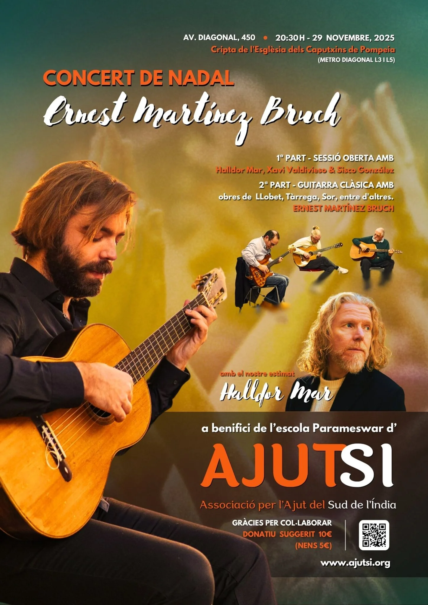 🎸El concert tindrà com a cap de cartell al guitarrista Ernest Martínez Bruch, que ens oferirà un repertori de guitarra clàssica amb obres de Llobet, Tàrrega, Sor i altres mestres.