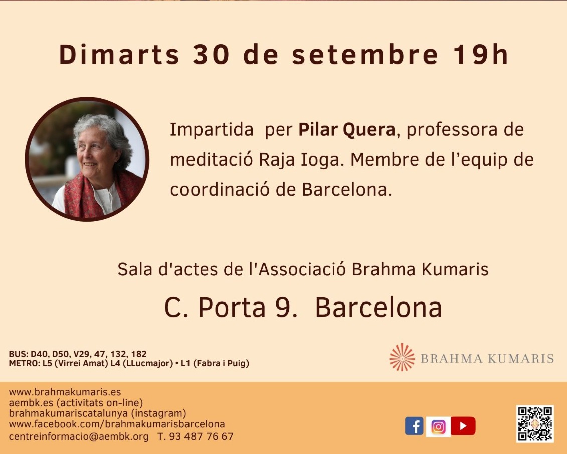 Data inici * dt., 30/09/2025 - 19:00 Districte * Nou Barris Conferència: El poder transformador de l'amor Organitza Associació Brahma Kumaris Acceptar els reptes i aprendre per créixer. Reflexió i meditació.
