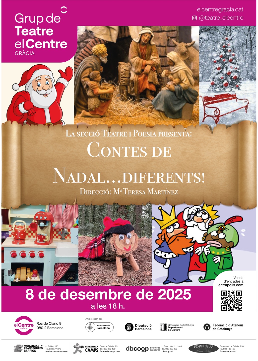 Ja fa una anys que el nostre grup de Teatre i Poesia, és l’encarregat de representar una lectura dramatitzada el dia de la Immaculada, patrona del Centre, per encetar el període de les celebracions nadalenques que culminen, cada any, amb les representacions del “producte estrella” de la casa: Els Pastorets. Des de la nostra modèstia, hem intentat oferir-vos, any rere any, un ventall de lectures molt variades de temàtica nadalenca. Enguany, com no podia ser altrament, hem preparat una sèrie de relats, de diversa autoria, una mica… “diferents”… o, potser, no tan habituals; tot i que, tan els realistes com els fantàstics, ens poden semblar molt propers.