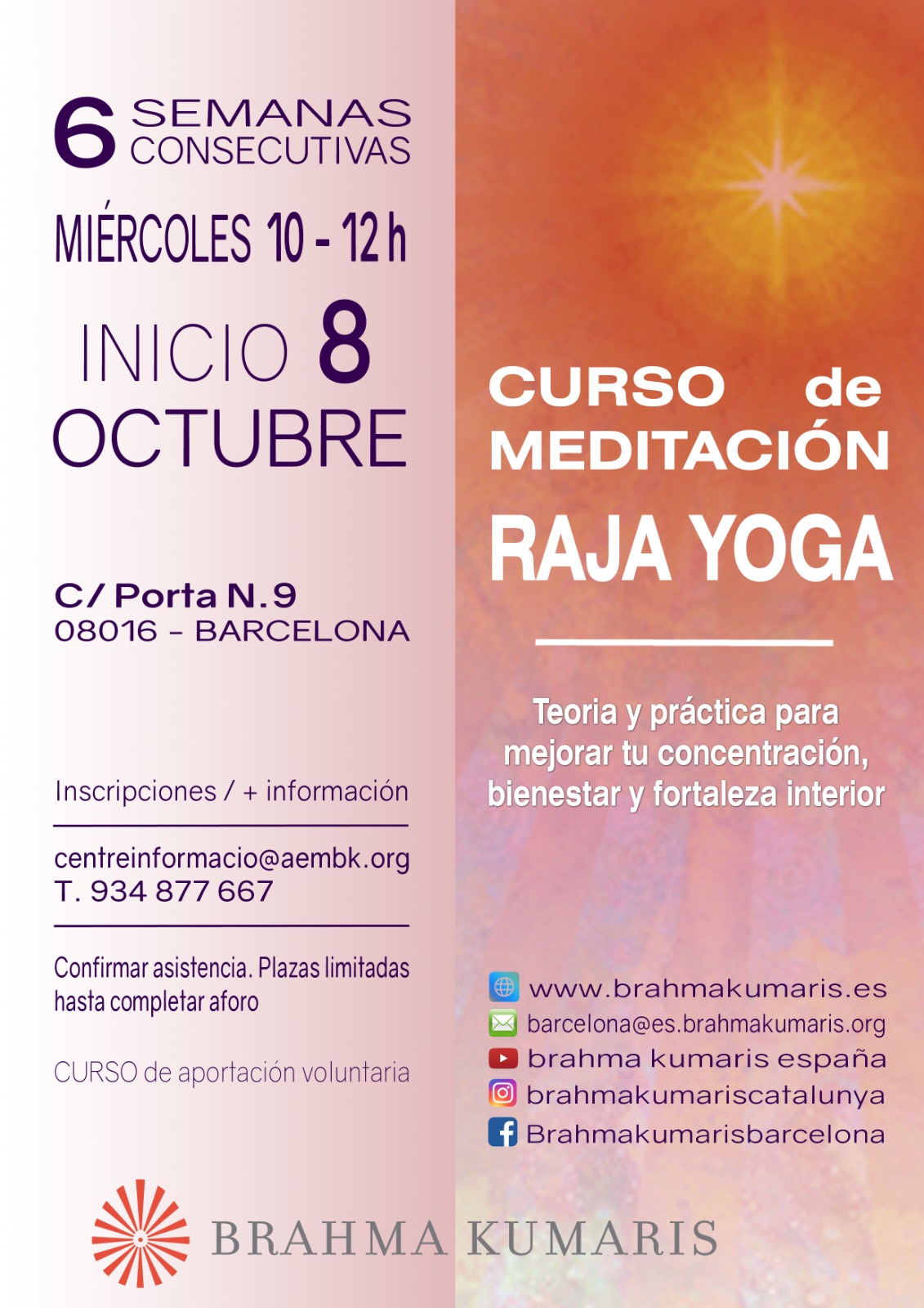 Curs per aprofundir en el coneixement i la pràctica de la Meditació Raja Yoga. La pràctica de la meditació ens pot ajudar a trobar un espai interior on calmar-nos i recuperar la nostra fortalesa.