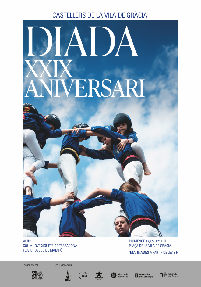 Els Castellers de la Vila de Gràcia celebrem el dia 17 de maig la Diada Castellera del XXIXé Aniversari.