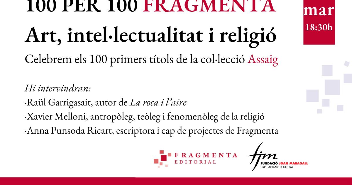 En aquesta conversa entre Raül GARRIGASAIT, Xavier MELLONI i Anna PUNSODA, s’abordarà la dimensió intel·lectual del fet religiós, amb especial èmfasi en la seva manifestació artística. Fidel al seu objectiu d’estar atenta a l’actualitat cultural i religiosa de la nostra societat, en aquesta ocasió la Fundació Joan Maragall col·labora amb Fragmenta Editorial i us proposa aquesta activitat, a propòsit de la publicació del llibre La roca i l’aire, de Raül Garrigasait.