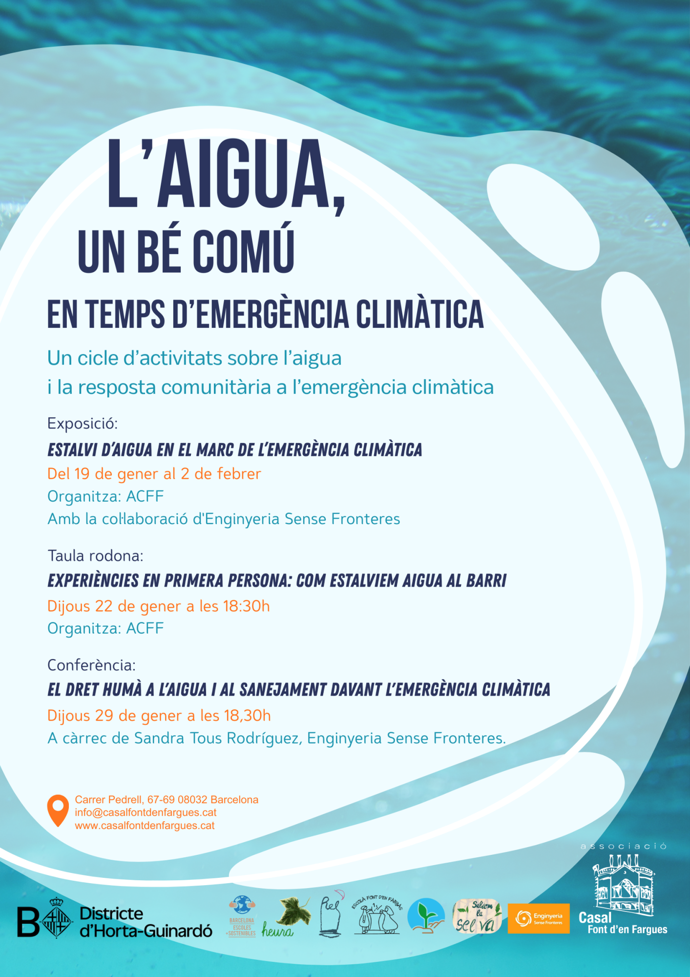 En aquesta conferència s’analitzarà el canvi climàtic i del model que ens porta a la situació d'escassetat (sobreexplotació, privatització, etc.), així com les propostes sobre la gestió de l’aigua i de la sequera que fan les administracions.