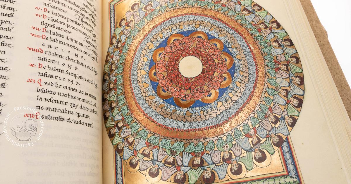 Les tres obres de visions d’Hildegarda de Bingen (1098-1179), Scivias (o Coneix els camins), Llibre dels mèrits de la vida i Llibre de les obres divines, constitueixen un tot omnicomprensiu. Escrites en prosa llatina, recullen els continguts de les “visions” que Hildegarda percebia en la seva ànima i que la “veu del cel” (vox de caelo) interpretava per a ella. Així, segons la magistra renana, veia, sabia i entenia simultàniament el significat profund d’aquestes revelacions divines. Les pàgines dels seus manuscrits estan fornides de metàfores i d’un llenguatge poètic amb els quals vol transmetre un missatge essencial per a la humanitat. A més, dos dels còdex conservats estan il·lustrats amb miniatures d’una gran bellesa que dialoguen amb els seus escrits. La veu inspiradora de la “trompeta de Déu”, tal i com s’autoanomena Hildegarda de Bingen, ens guiarà a mesura que ens endinsem a través del seu ric imaginari.