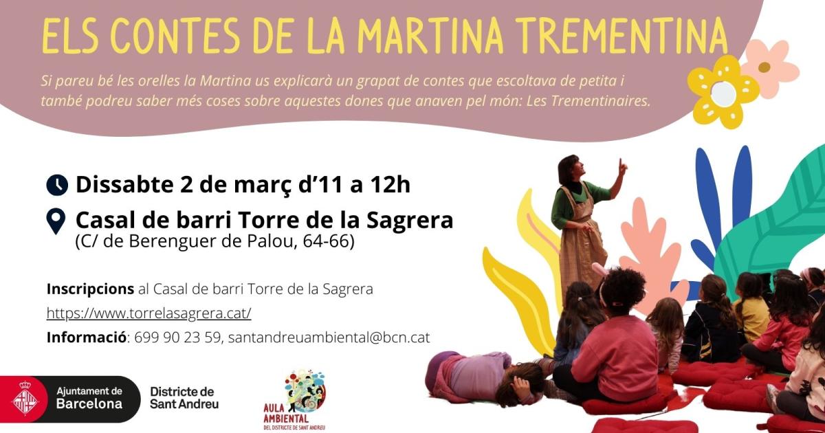 A la Martina la coneixen com la Martina Tremenentina, perquè a casa seva hi havia viscut una trementinaire: l’àvia Remei. L’àvia recollia herbes medicinals, plantes aromàtiques, resines dels arbres... i en feia ungüents i olis essencials com la Trementina; després ho anava a vendre fent llargs viatges a peu. La gent dels pobles i ciutats li explicava contes i l’àvia Remei recollia totes aquestes històries i les guardava com les herbes, perquè els contes també són medicinals: poden curar l’avorriment, mantenen el cap ben clar i el cor esponjat i sobretot ajuden a mantenir els somnis ben vius. Si pareu bé les orelles la Martina us explicarà un grapat de contes que escoltava de petita i també podreu saber més coses sobre aquestes dones que anaven pel món: Les Trementinaires.