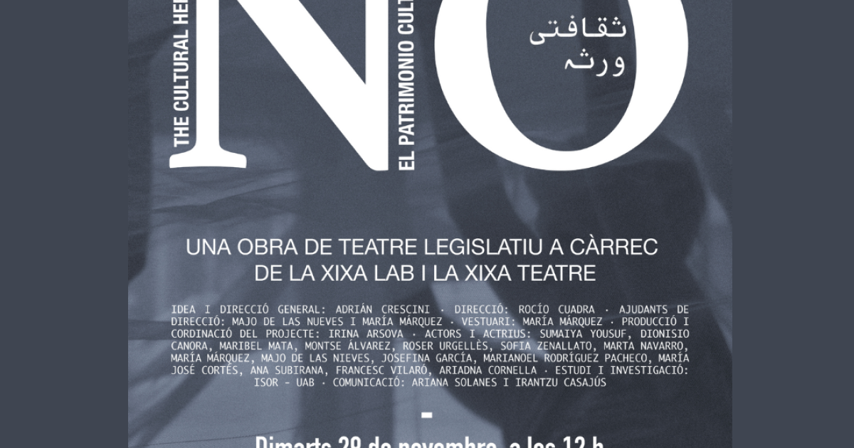El grup de Teatre Legislatiu LEGACI juntament amb la companyia de teatre La XixaLAB i l'associació La Xixa Teatre, presenten el dimarts 29 de novembre la peça de teatre legislatiu "NO", una obra de teatre performativa sobre el patrimoni, el llegat i la identitat.
