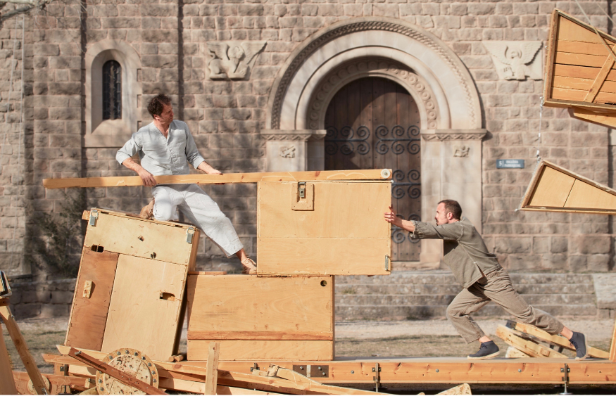 Espectacle-instal·lació, que gira al voltant de l'enginy des d'una òptica artística i artesanal. A l'escenari, un arc gegantí de caixes molt pesades es construeix utilitzant com a premissa l'economia de l'esforç i del moviment, i se serveix d'una tecnologia ancestral, però plena de vigència: la palanca, la corriola, la roda…