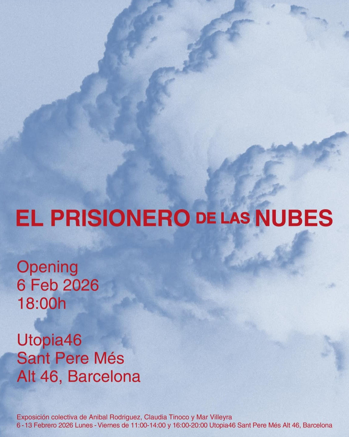 L’exposició “El presoner dels núvols” és una mostra col·lectiva d’art visual que se celebra a Utopia46, un espai cultural situat a Barcelona (carrer de Sant Pere Més Alt, 46).