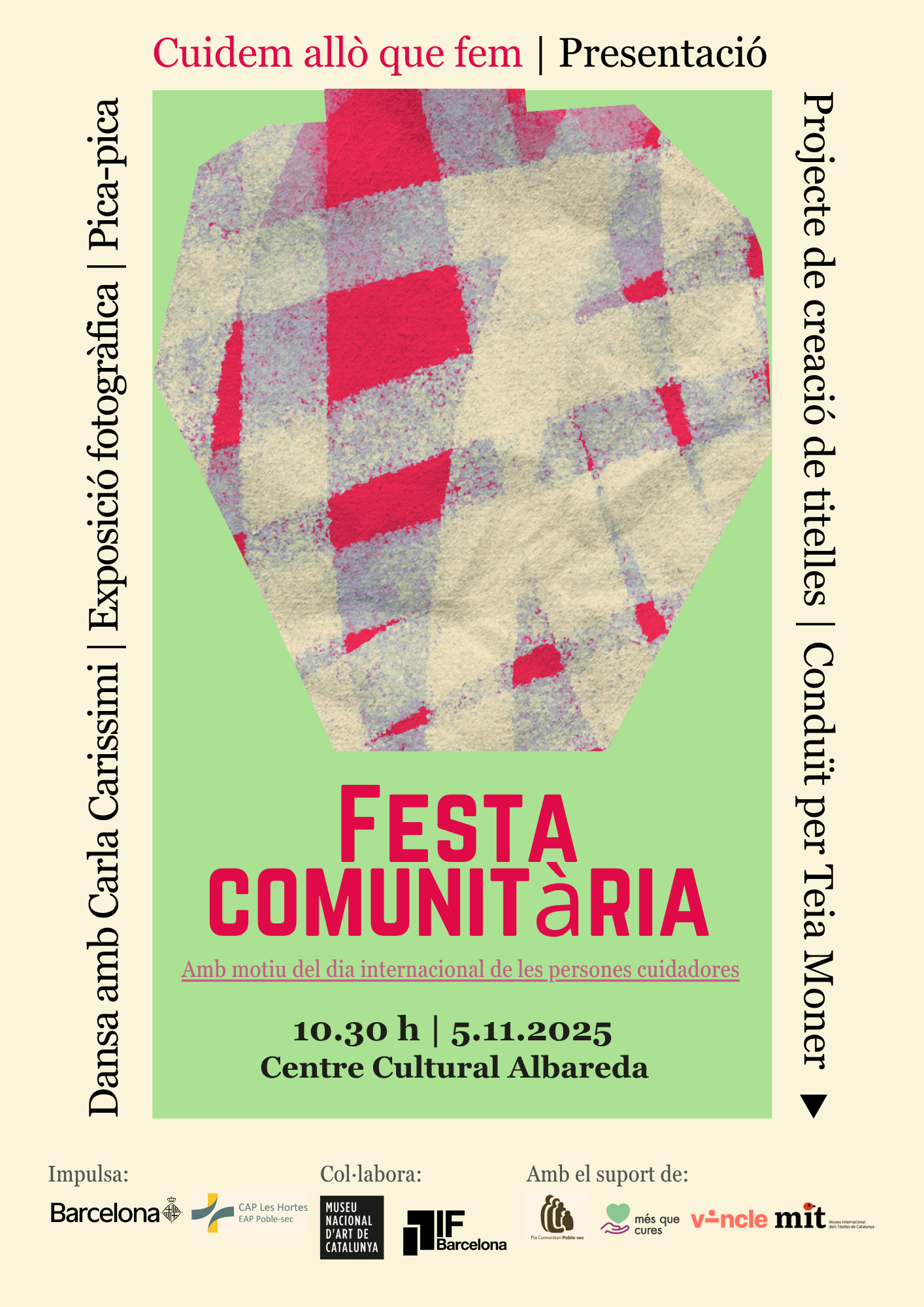 Tot això passarà al Centre Cultural Albareda, molt ben acompanyades de la comunitat, amb Més que cures i l'Associació Vincle amb el seu projecte Educart, qui ja fa temps que treballen per col.lectivitzar les cures.