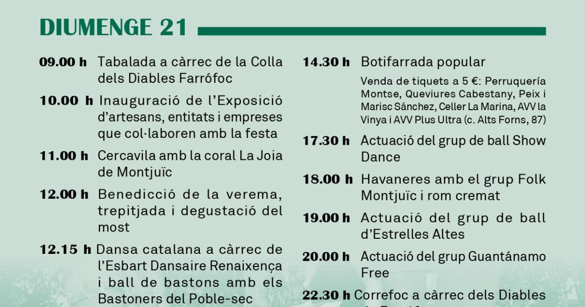 El programa inclou una selecció d’activitats per a tots els públics: trobades veïnals, actuacions musicals, tallers, jocs infantils i àpats populars. Durant el cap de setmana, la festa omplirà els carrers i espais del barri amb propostes variades.