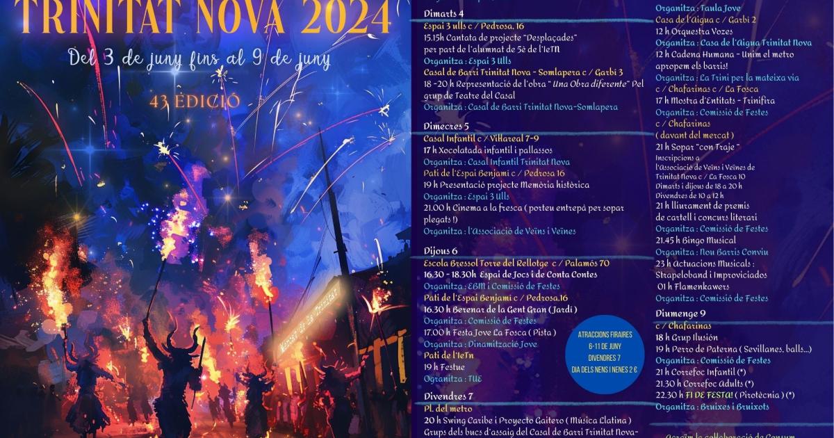 Compartim el programa de les FESTES DE LA TRINITAT NOVA 2024, 43 EDICIÓ !