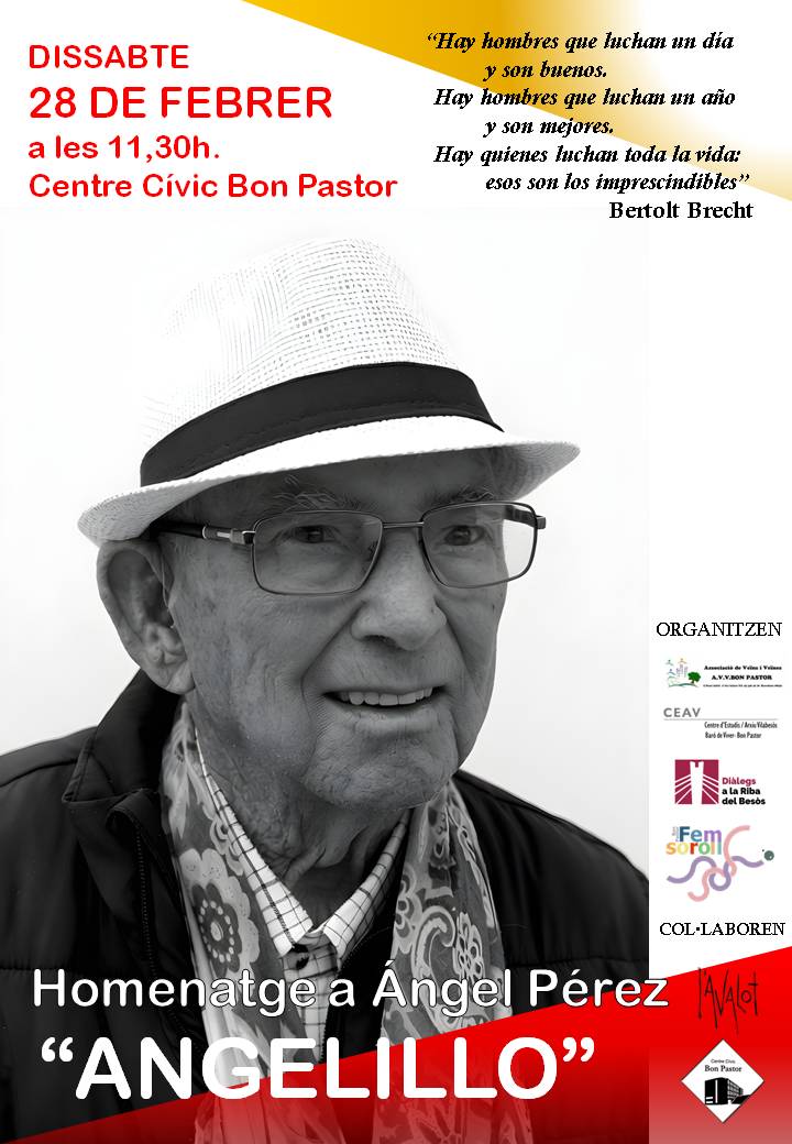 La seva família, els seus amics i amigues, els seus camarades, els seus veïns i veïnes i entitats del barri, li reten un merescut homenatge.