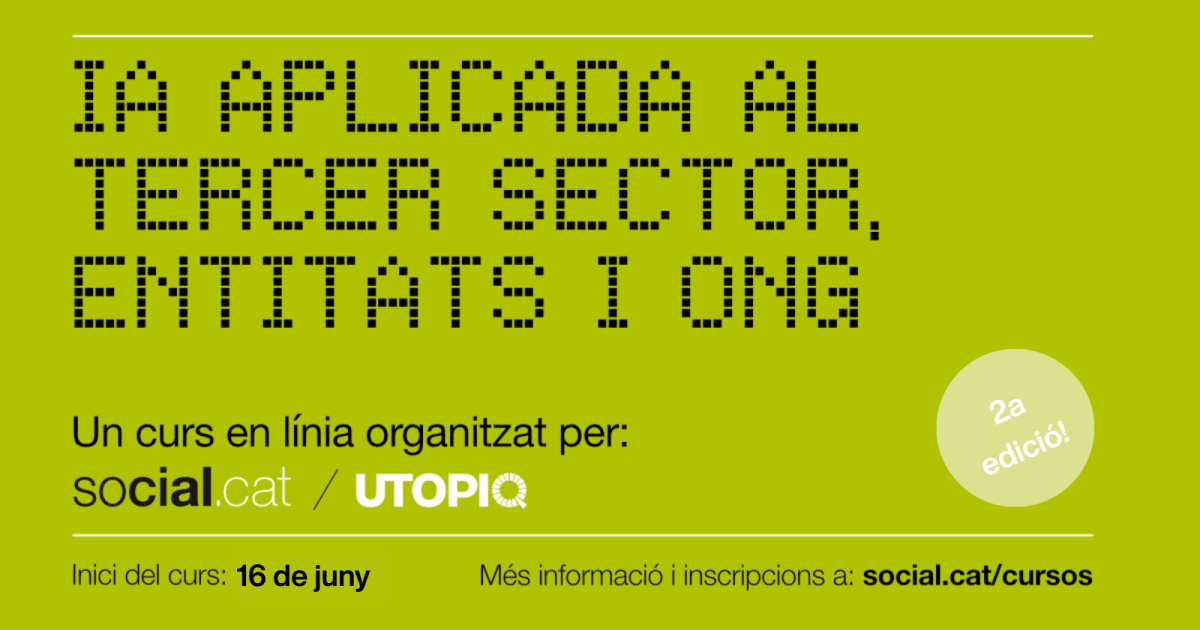 En un món en constant evolució, les entitats del tercer sector social necessiten adaptar-se per mantenir el seu impacte i eficiència. Per aquest motiu, des del Social.cat hem decidit aliar-nos amb l’agència de comunicació Utopiq per a impulsar el curs ‘IA aplicada al tercer sector, entitats i ONG’, una iniciativa que arrenca la seva segona edició el pròxim dilluns 16 de juny i que vol ajudar els professionals i les organitzacions socials a integrar l’ús de la intel·ligència artificial de manera pràctica i responsable.
