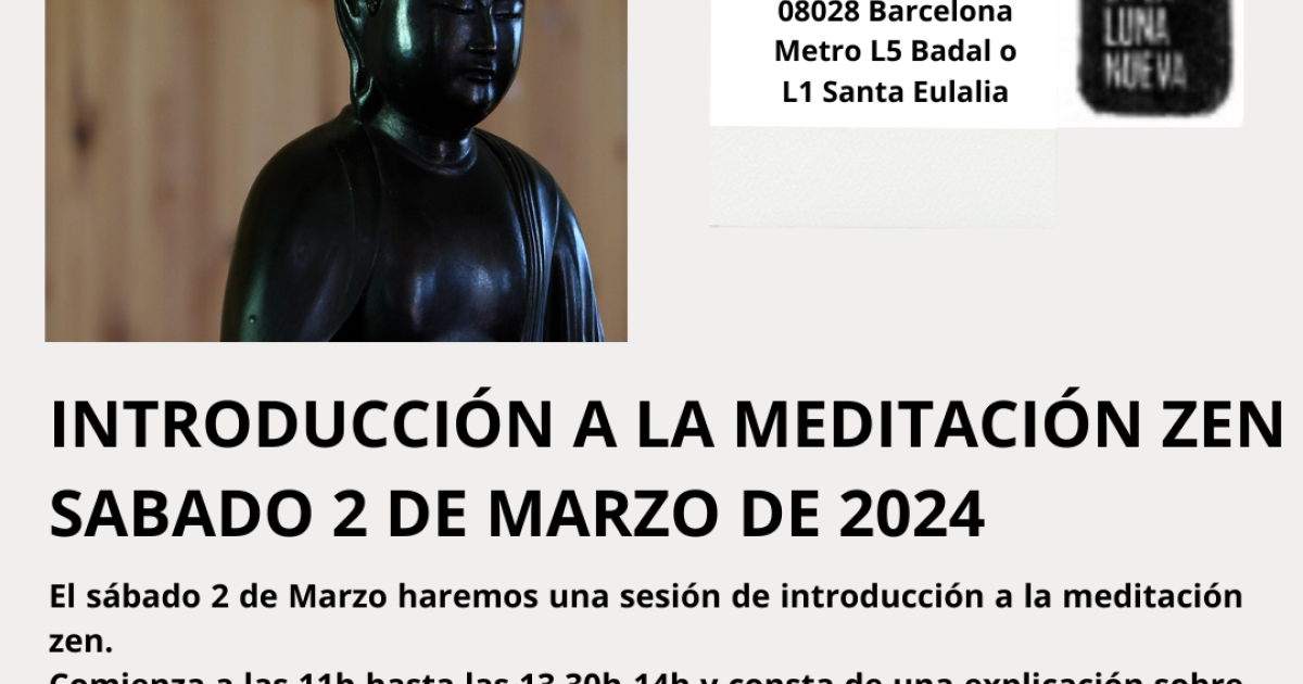 El dissabte 2 de març farem una sessió d’introducció a la meditació zen. Comença a les 11h fins a les 13.30h-14h i consta d’una explicació sobre els principis bàsics de la pràctica de la meditació zen, així com una introducció al budisme zen, l’ensenyament de la postura i es realitza una sessió de zazen (meditació). També es dona informació sobre el funcionament del centre i hi ha espai per poder preguntar qualsevol dubte.