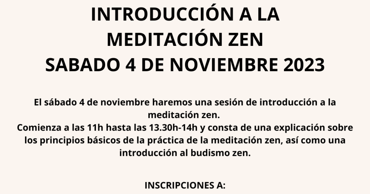 El dissabte 4 de novembre farem una sessió d’introducció a la meditació zen. Comença a les 11h fins a les 13.30h-14h i consta d’una explicació sobre els principis bàsics de la pràctica de la meditació zen, així com una introducció al budisme zen, l’ensenyament de la postura i es realitza una sessió de zazen (meditació). També es dona informació sobre el funcionament del centre i hi ha espai per poder preguntar qualsevol dubte.