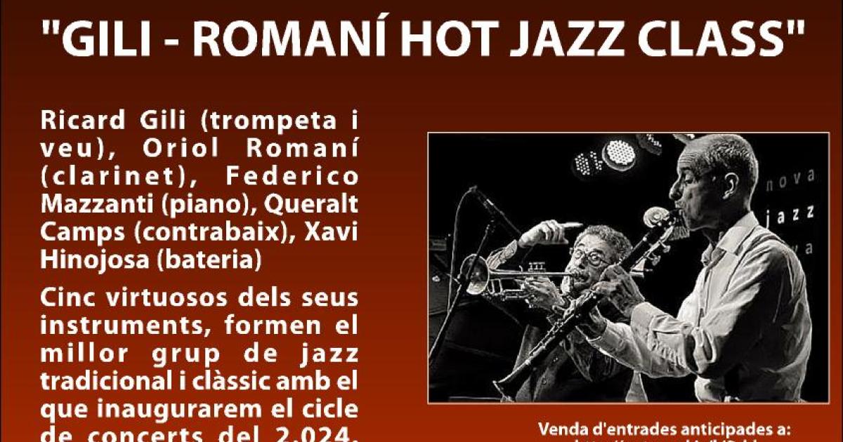 "Ricard Gili (trompeta i veu) i Oriol Romaní (clarinet) encapçalen un quintet que completen Federico Mazzanti (piano) Queralt Camps (contrabaix) i Xavi Hinojosa (bateria), un conjunt de músics de primer nivell que ens farà vibrar amb un swing potent per gaudir plenament dels millors temes del jazz tradicional. No deixeu passar l'oportunitat d'escoltar el "Gili-Romaní Hot Jazz Cats" el dissabte 13 de gener a les 19 hores al "Centre"
