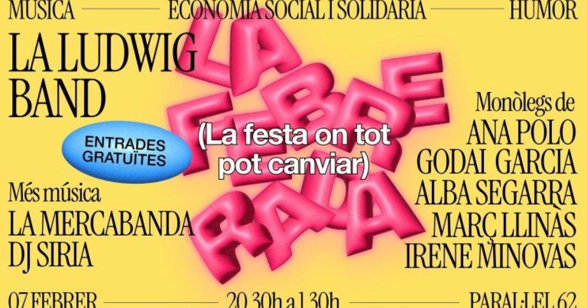 Al vespre, La Febrerada s’ampliarà a tota la ciutadania amb una nit de monòlegs i concerts a Paral·lel 62. Aquest acte busca apropar l’economia social i solidària a un públic més jove, en un ambient lúdic i cultural.