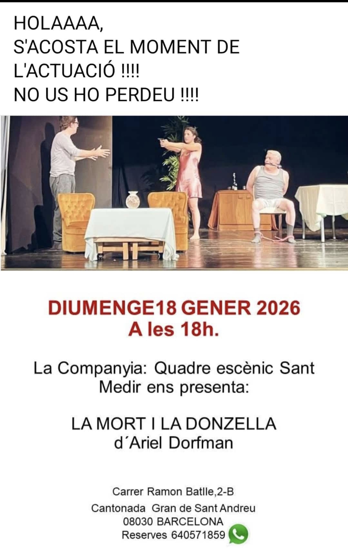 Obra de teatre. Tres personatges viuen una situació molt forta dintre de les seves vides