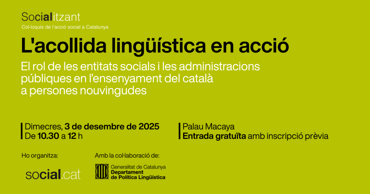 Aquestes seran algunes de les preguntes que guiaran el debat de la taula rodona ‘L’acollida lingüística en acció: el paper de les entitats socials i l’administració pública en l’ensenyament del català per a persones nouvingudes’, que se celebrarà el dimecres 3 de desembre a les 10.30 h al Palau Macaya (Pg. de St. Joan, 108, Barcelona). Serà un espai de trobada on posarem sobre la taula reptes, oportunitats i experiències d’èxit d’entitats que s’han convertit en agents essencials d’acollida lingüística a Catalunya. Una jornada per descobrir noves estratègies i reforçar el català com a llengua de cohesió.