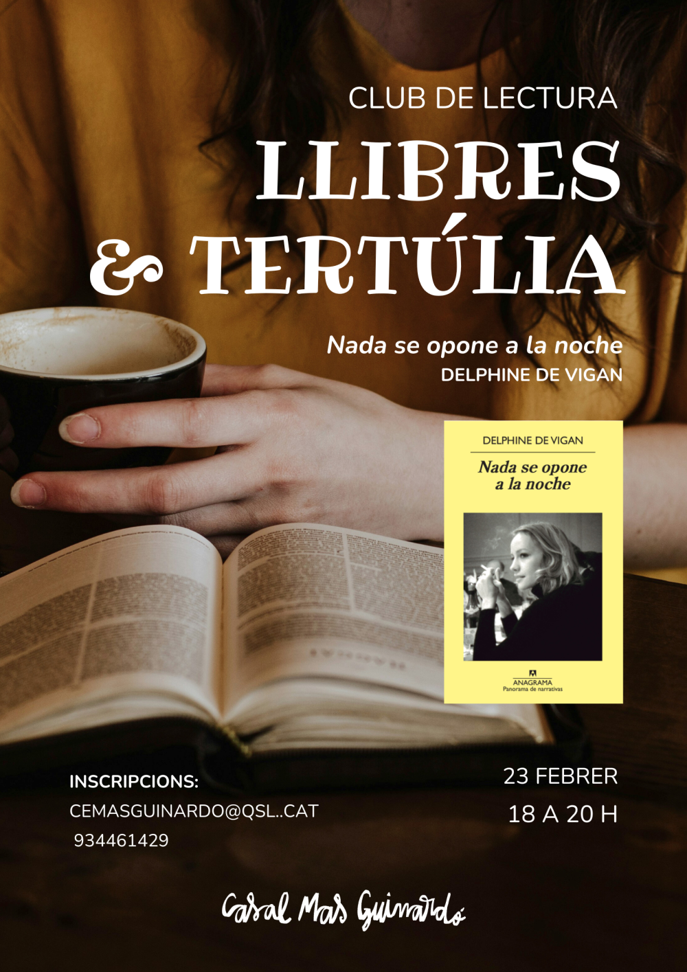 Pròxima sessió: 23 de febrer, de 18 a 20 h. Nada se opone a la noche, de Delphine de Vigan.