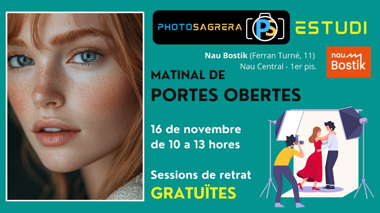 Matinal de Portes obertes 16 de novembre de 10 a 13 hores Sessions de retrat - GRATUÏTES -