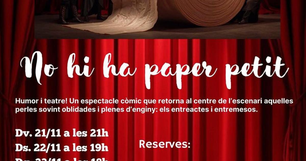 No hi ha paper petit és un espectacle còmic que busca entretenir tot reivindicant el valor de les peces relegades a un segon pla: els entreactes o entremesos. Durada aproximada 1h 15minuts.