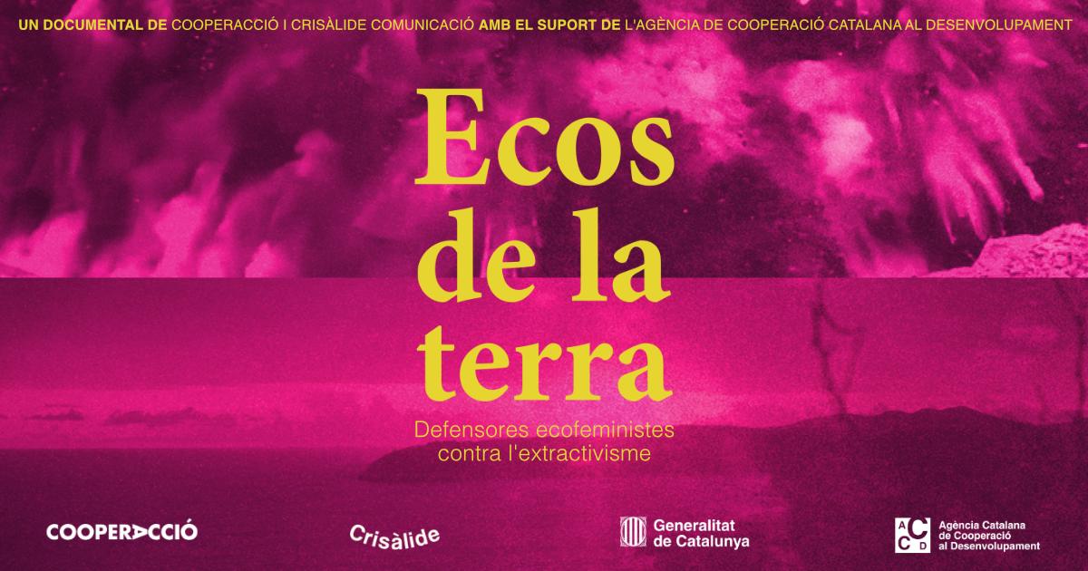 La pre-estrena d'Ecos de la Terra serà a les 19h al Zumzeig Cinecooperativa (Carrer de Béjar 53, Barcelona) i al finalitzar, tindrem un col·loqui amb les creadores del documental i activistes ecofeministes en el que convidarem a les assistents a reflexionar plegades sobre el model extractiu, les eines de defensa ecofeminista i les possibilitats de reparació a les comunitats i territoris. L’entrada és lliure però és cal fer inscripció aquí: https://forms.komun.org/pre-estrena-ecos-de-la-terra