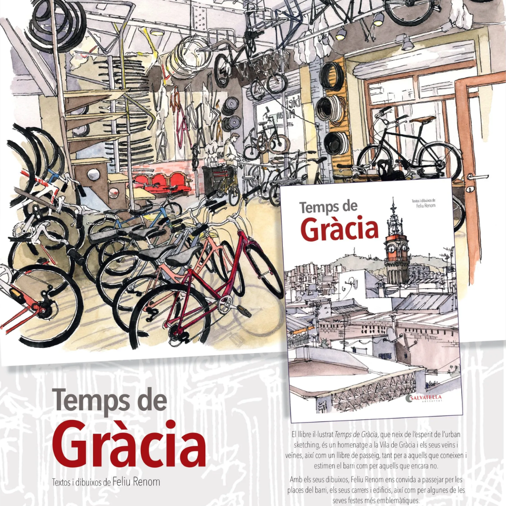 DESCRIPCIÓ: TEMPS DE GRÀCIA és un llibre il·lustrat que neix de l’esperit de l’urban sketching i esdevé un homenatge a la Vila de Gràcia i als seus veïns i veïnes. És també un llibre de passeig, pensat tant per a qui coneix i estima el barri com per a qui encara l’ha de descobrir.