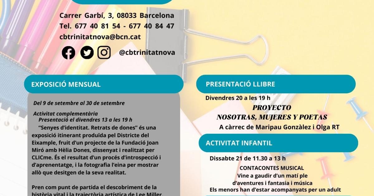 Compartim la programació del mes de SETEMBRE 24 al Casal de Barri Trinitat Nova - Somlapera.