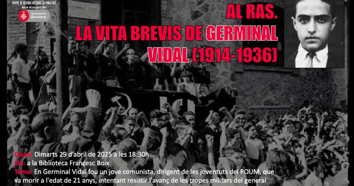En Germinal Vidal fou un jove comunista, nascut al Poble-sec, dirigent de les joventuts del POUM, que va morir a l'edat de 21 anys, intentant resistir l'avanç de les tropes militars del general Manuel Goded Llopis, el 19 de juliol de 1936 a la plaça de la Universitat. En record d’aquests fets, la plaça que ara coneixem com Navas, durant un temps va dur el nom de Germinal Vidal, tal i com es pot veure en la segona fotografia. Això i més ens ho explicarà en Ramón Ferrerons.