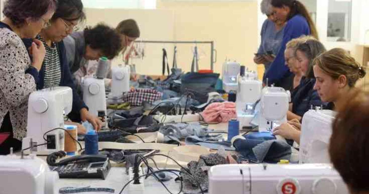 Amb materials reciclables farem un treball de creació tèxtil a partir de l’experiència del grup de costura lliure del Centre de Vida Comunitària.