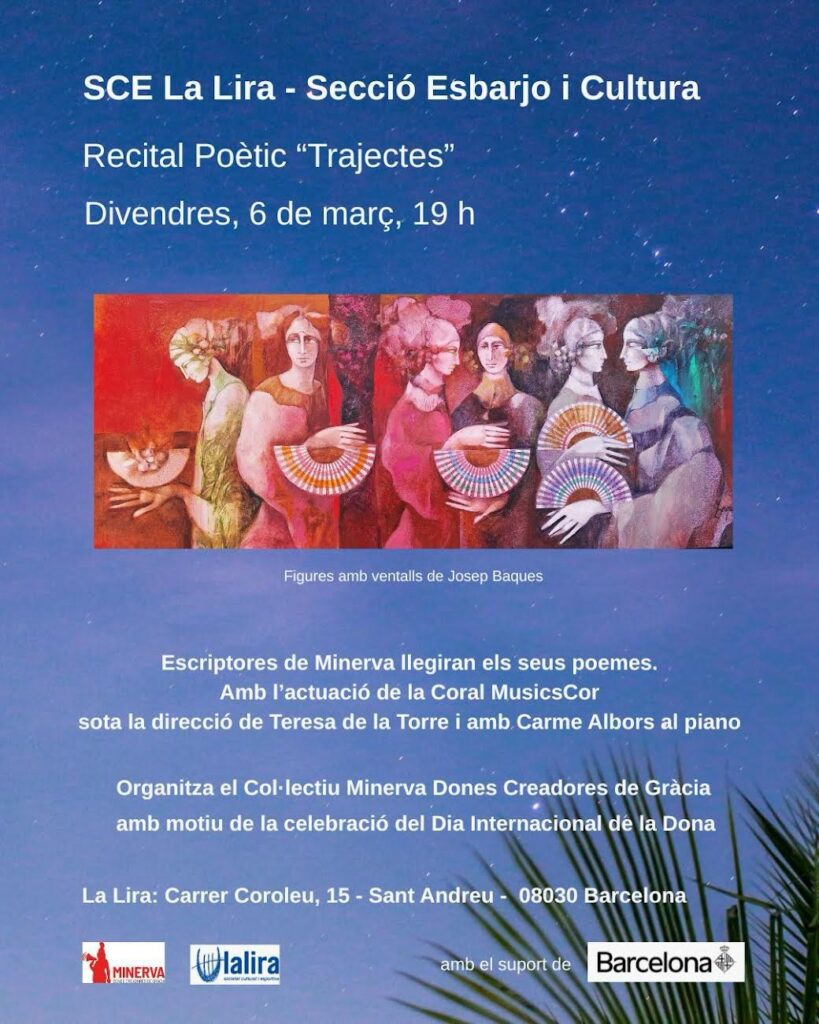 Diferents Minerva llegirem els nostres poemes conjuntament amb l'actuació de la Coral MusicsCor del Maresme, dirigit per Teresa de la Torre i amb Carme Albors al Piano.