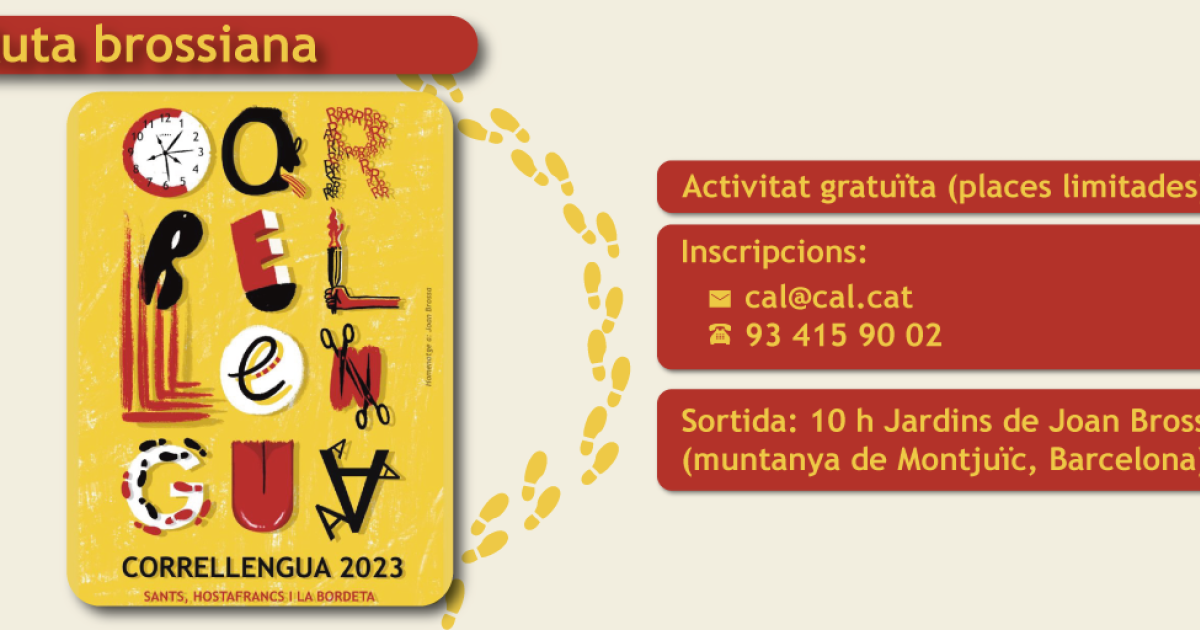 Diumenge 22 d’octubre, en el marc del Correllengua que se celebra a Sants, Hostafrancs i la Bordeta, es proposa fer una ruta brossiana per conèixer algunes de les obres de Joan Brossa que hi ha repartides per la ciutat. Cristina Company, guia col·laboradora de la Fundació Joan Brossa i membre del nucli de les Corts de la CAL, serà la guia.