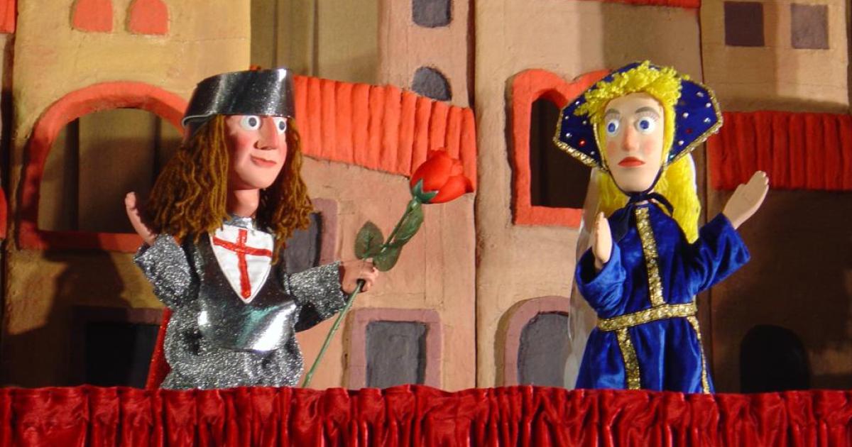 Adaptació titellaire de la llegenda popular de Sant Jordi, la princesa i el drac.