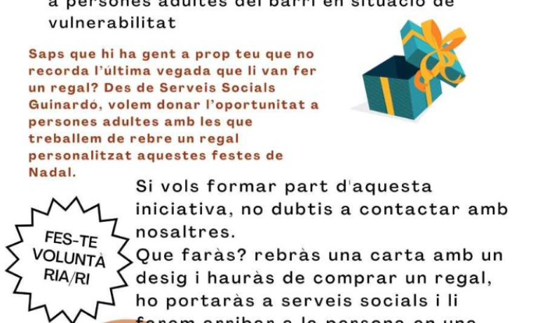 Aquest Nadal, ajuda'ns a fer arribar un regal a persones adultes del barri en situació de vulnerabilitat