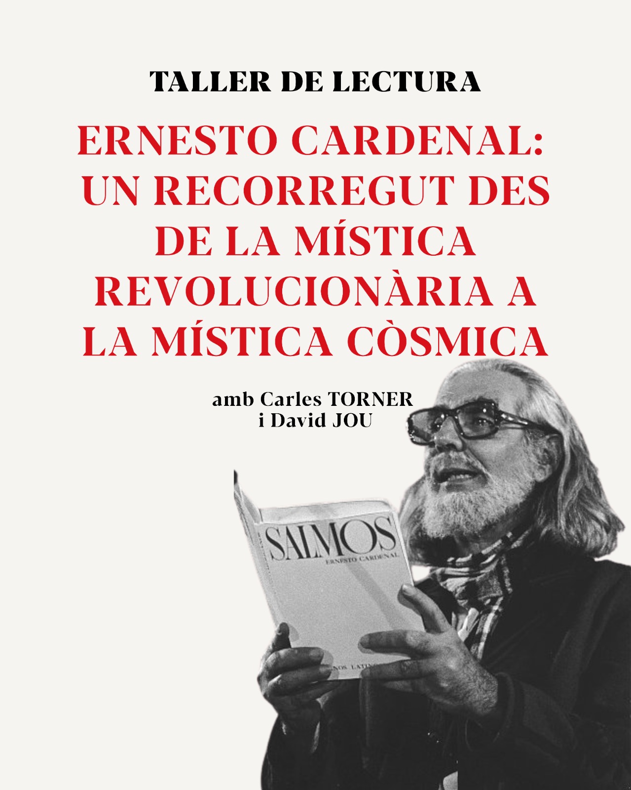 Carles TORNER i David JOU ens guiaran, en aquest taller de lectura, per l’obra d’Ernesto Cardenal (1925-2020), capellà, teòleg, revolucionari, i un dels poetes iberoamericans en llengua castellana més prolífics, coneguts i debatuts del segle XX. Des dels primers llibres de poemes marcats pel compromís polític a Nicaragua i l’experiència de la Trapa de Getsemaní (Kentucky) fins al Cántico cósmico, el llibre més cabalós i místic del poeta nicaragüenc. És una aventura poètica vital apassionada, torrencial, de gran envergadura, marcada pel gust de viure, per l’esperit crític i per l’aposta cristiana, en què la inquietud religiosa i el neguit social conflueixen amb cosmologia, física quàntica, evolució i neurociències, en una alenada poètica compromesa, poderosa i especulativa, que evoluciona des de la mística revolucionària a la mística còsmica.