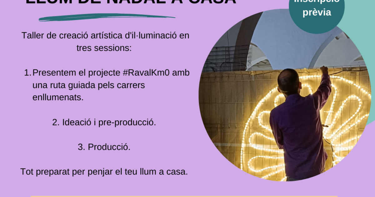 Taller de creació artística amb tres sessions per descobrir el projecte #RavalKmo d’il·luminació de Nadal a través de la comunitat. Participa en les sessions per crear i produir el teu propi disseny dels llums de Nadal.
