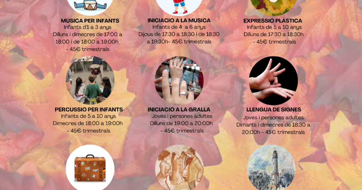 -Música per infants - d'1 a 3 anys (dilluns i dimecres de 17:00 a 18:00 i de 18:00 a 19:00