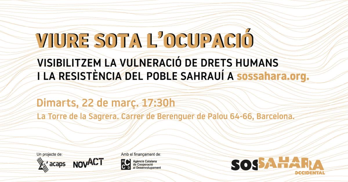 Des de la Federació ACAPS i Novact, volem convidar-vos, el proper dimarts 22 de març a les 17:30, a la presentació del portal web SOS Sàhara i a la Taula rodona "Viure sota l’ocupació, la vulneració de drets humans i la resistència del poble sahrauí".