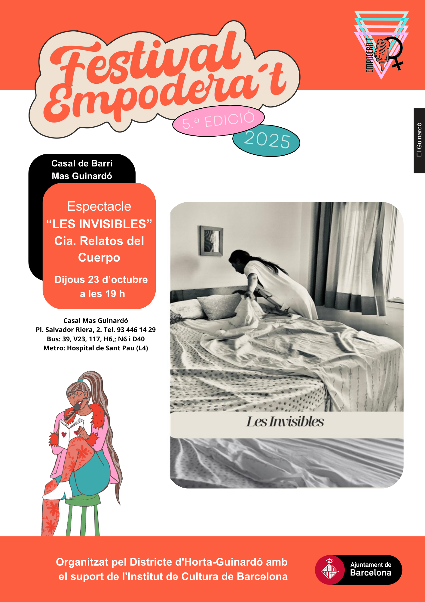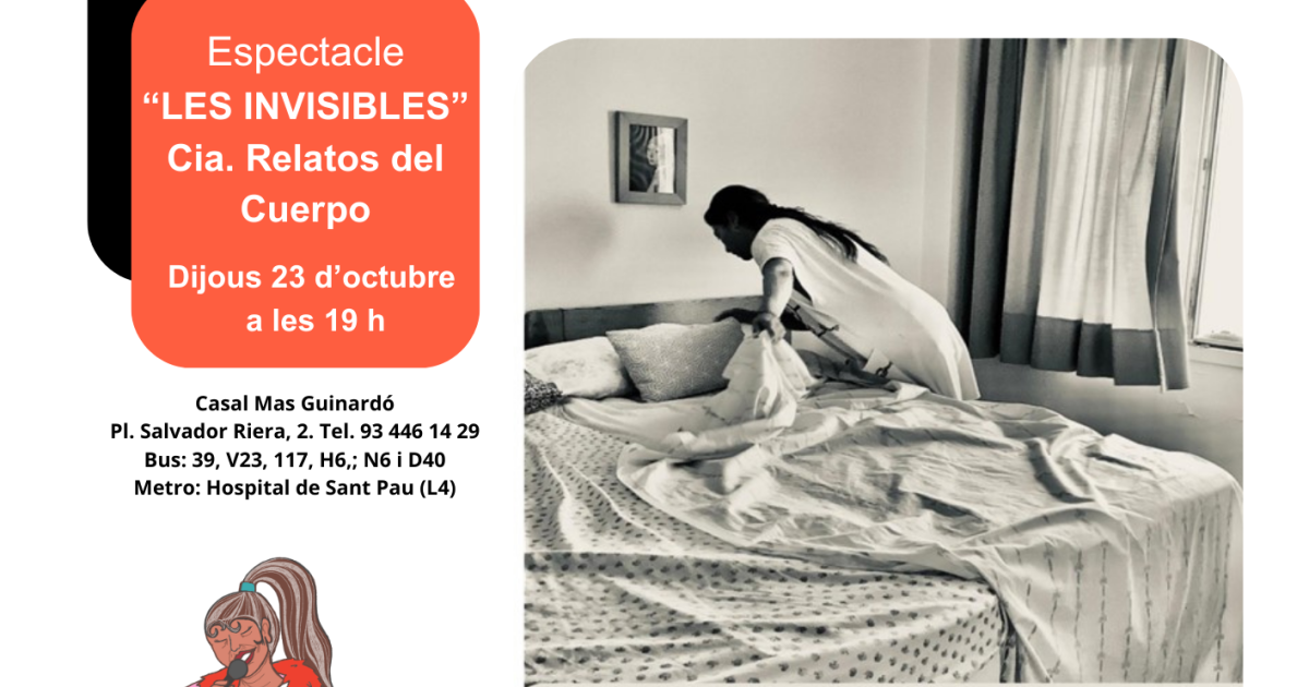 Les Invisibles. Qui és el monstre que habita sota el llit? La vida es repeteix com un loop: el llit sempre està per fer, la roba espera a ser plegada, les tovalloles han de lluir blanques i els vidres, transparents. Així comença Les Invisibles, una obra que exposa la vida de totes aquelles dones que carreguen, en silenci i sense descans, amb el pes de les cures i la neteja. Les seves protagonistes són treballadores invisibilitzades per la societat, dones sense nom, però indispensables perquè la vida d’altres funcioni.